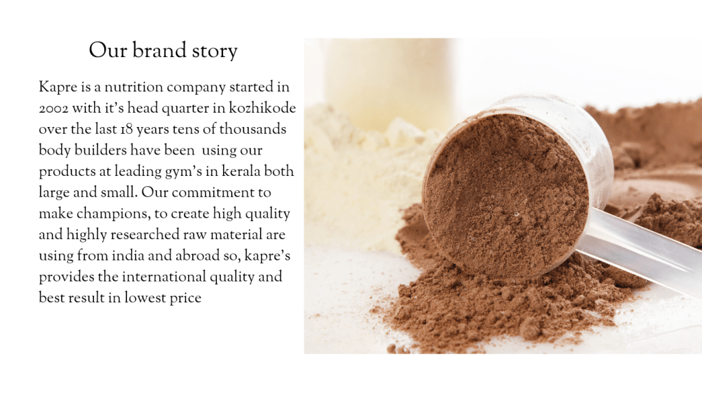 Kaapre is a nutrition company started in 2002 with it’s head quarter in kozhikode over the last 18 years tens of thousands body builders have been using our products at leading gym’s in kerala both large and small. Our commitment to make champions, to create high quality and highly researched raw material are using from india and abroad so, kaapre’s provides the international quality and best result in lowest price